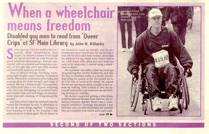 In the B.A.R.'s November 13 issue, John R. Killacky shared his experience in becoming disabled, and how using a wheelchair helped him gain more freedom than using a cane at age 51.